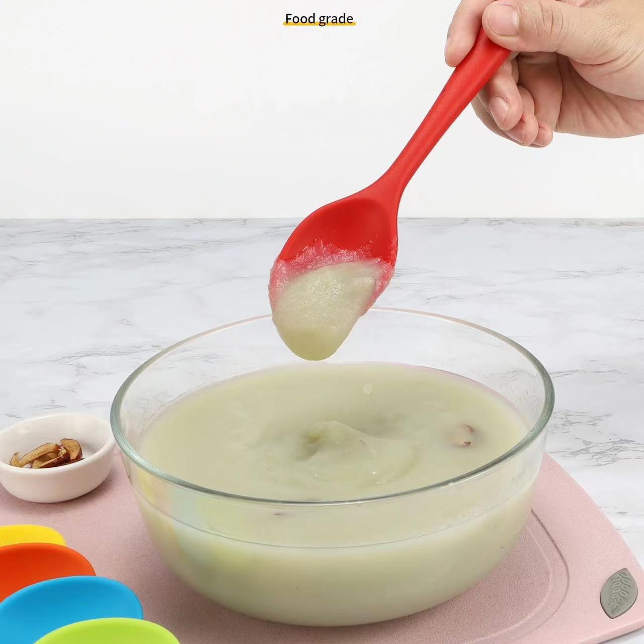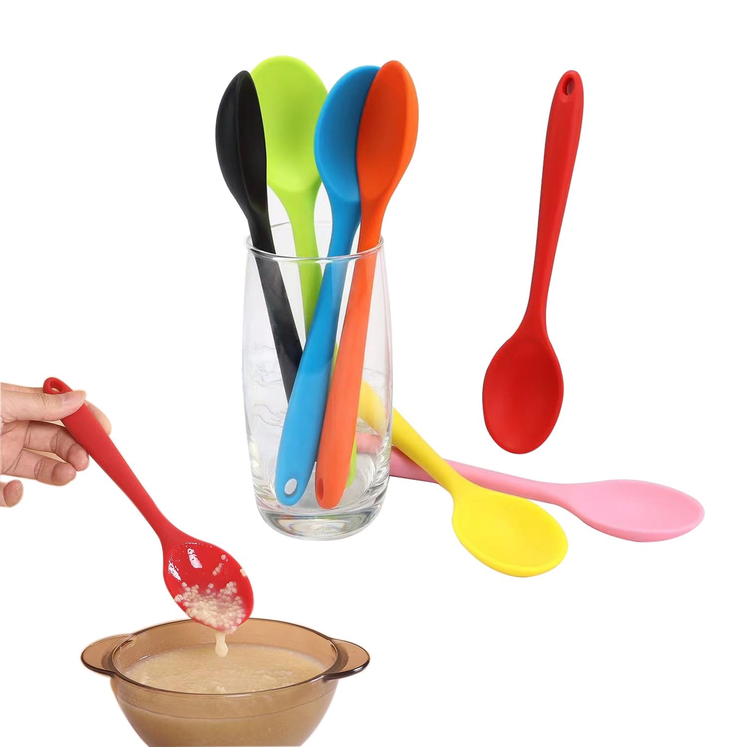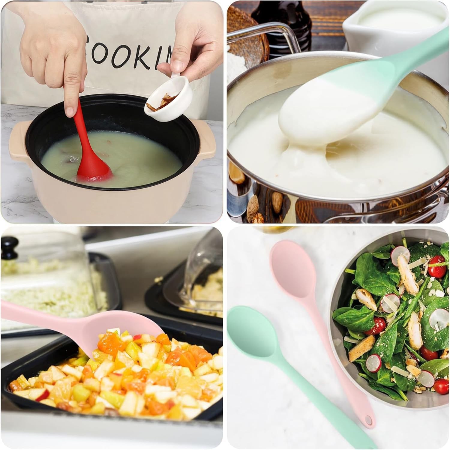 - Strong and Non Stick Material: the kitchen utensil spoon is made of quality silicone material, 1 piece design ensures no residue hidden and easy to clean, feature heat resistance characteristic, safe within the temperature range of -40 degrees Celsius - 220 degrees Celsius (-40°F - 428°F), bring you more safety and convenience, not easy to curl, meet the needs of daily mixing of hot and cold food