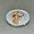 Gold Tone Champagne Halo Cocktail Ring Size 8 Round Stone Women Fashion Jewelry