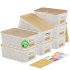 8 Pack Plastic Storage Bins with Bamboo Lids - Stackable Storage Baskets with...