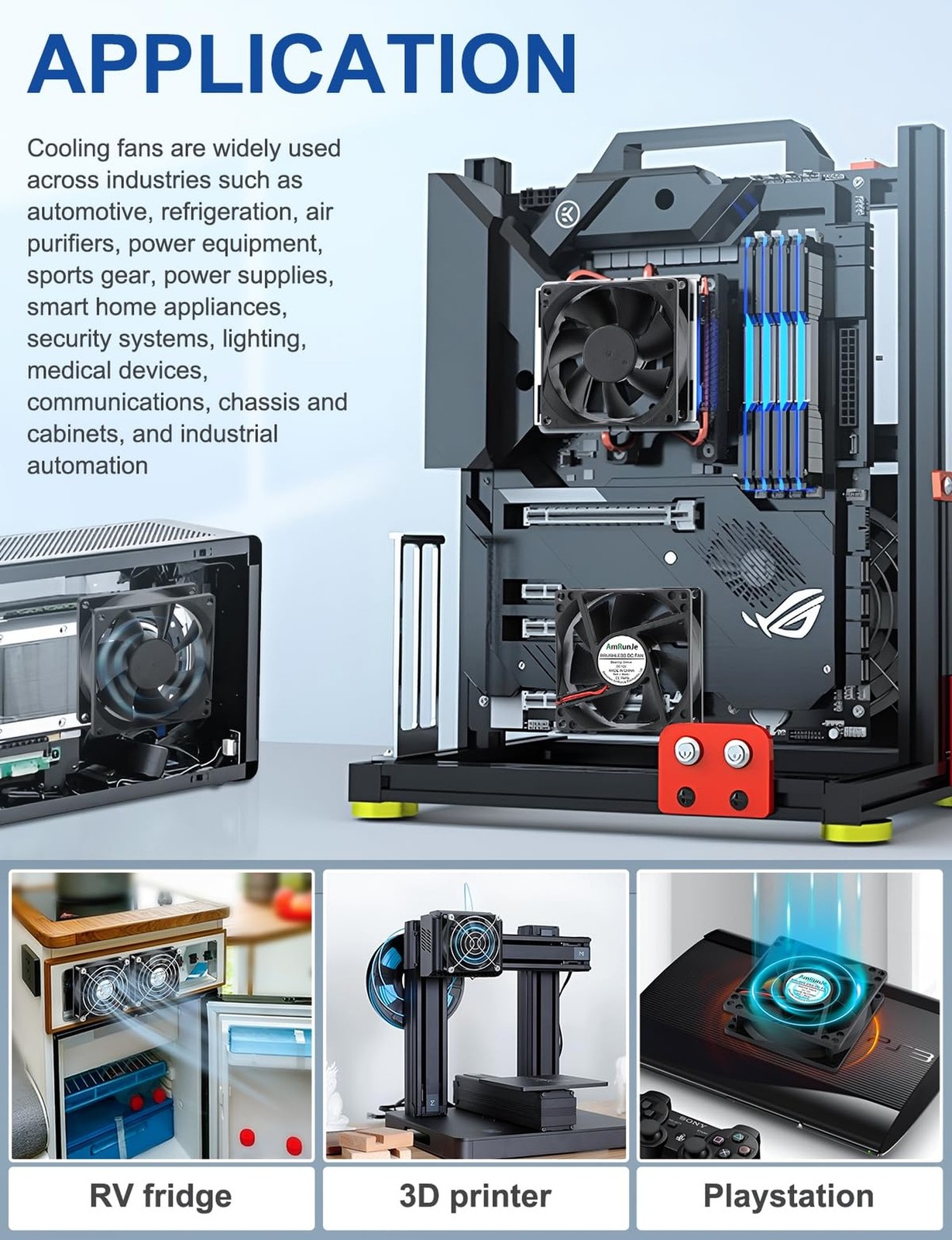 - APPLICATION: This 80mm pc fan is ideal for cooling motherboard chips and providing auxiliary cooling inside chassis. It's also suitable for low-power embedded systems, small industrial control cabinets, and commercial equipment