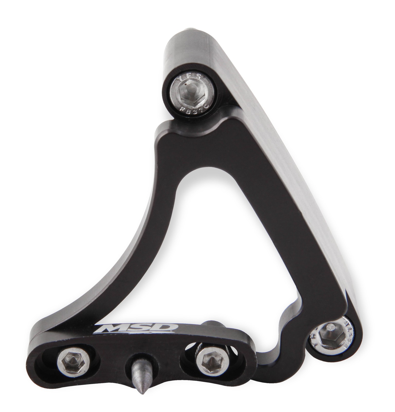 Small Block Chevrolet - Fits 7" Balancer. Complete your MSD ignition system with a precision adjustable timing pointer that is CNC-machined from 6061-T6 billet aluminum. Each pointer is fully machine-lightened for a great looking addition to any engine. The main body and adjustment assembly are black anodized for long-lasting corrosion protection. They are built to direct fit each application and various part numbers are available to fit multiple size balancers. MSD Timing Pointers are designed to work on Small Block Chevy, Big Block Chevy, and Small Block Ford engines and have a 4-degree range of movement for finding that precise timing location. Stainless steel hardware is included with each timing pointer.. Supplied with Stainless Steel Hardware.
