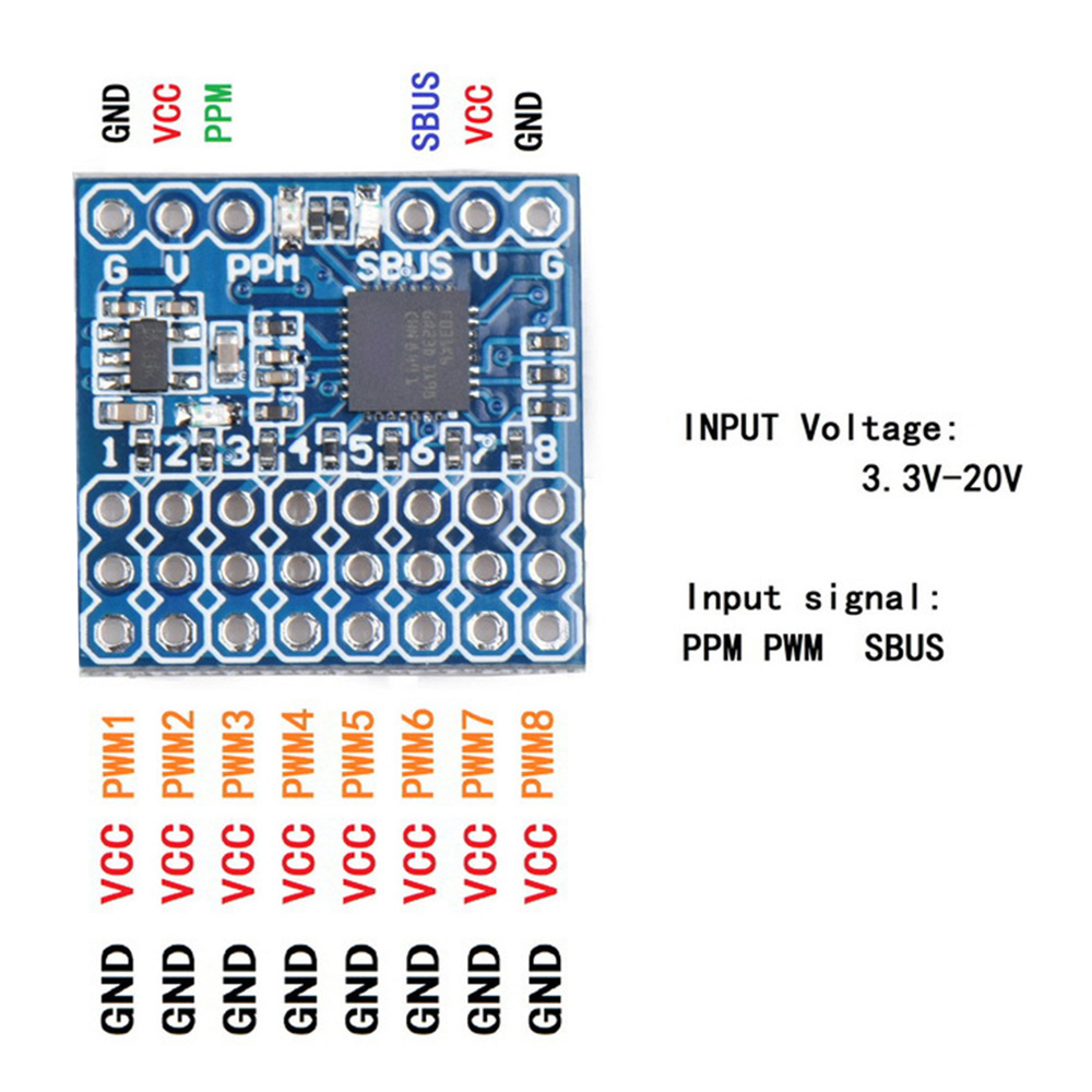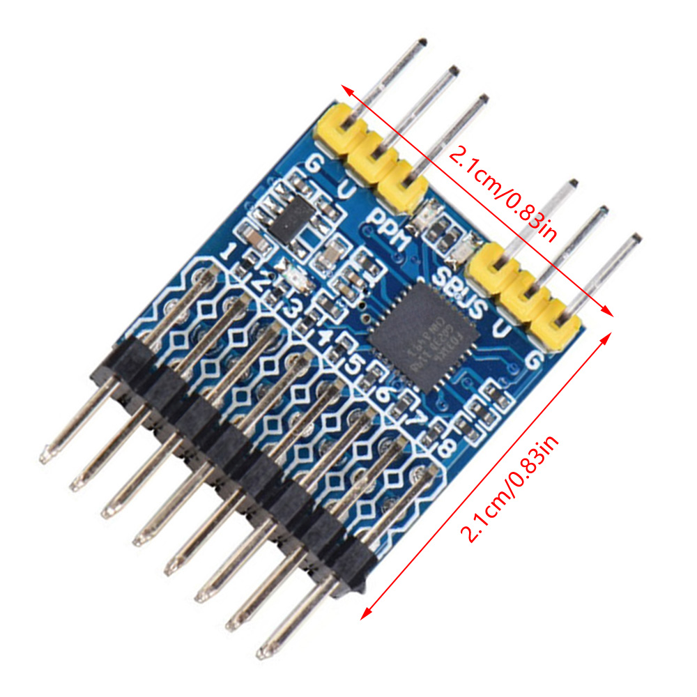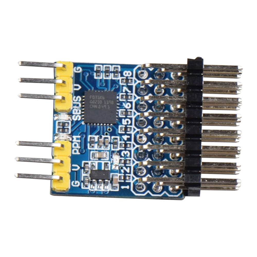 When SBUS channel inputs SBUS signal, corresponding 1-8 channels output PWM signal and PPM channel outputs PPM signal.