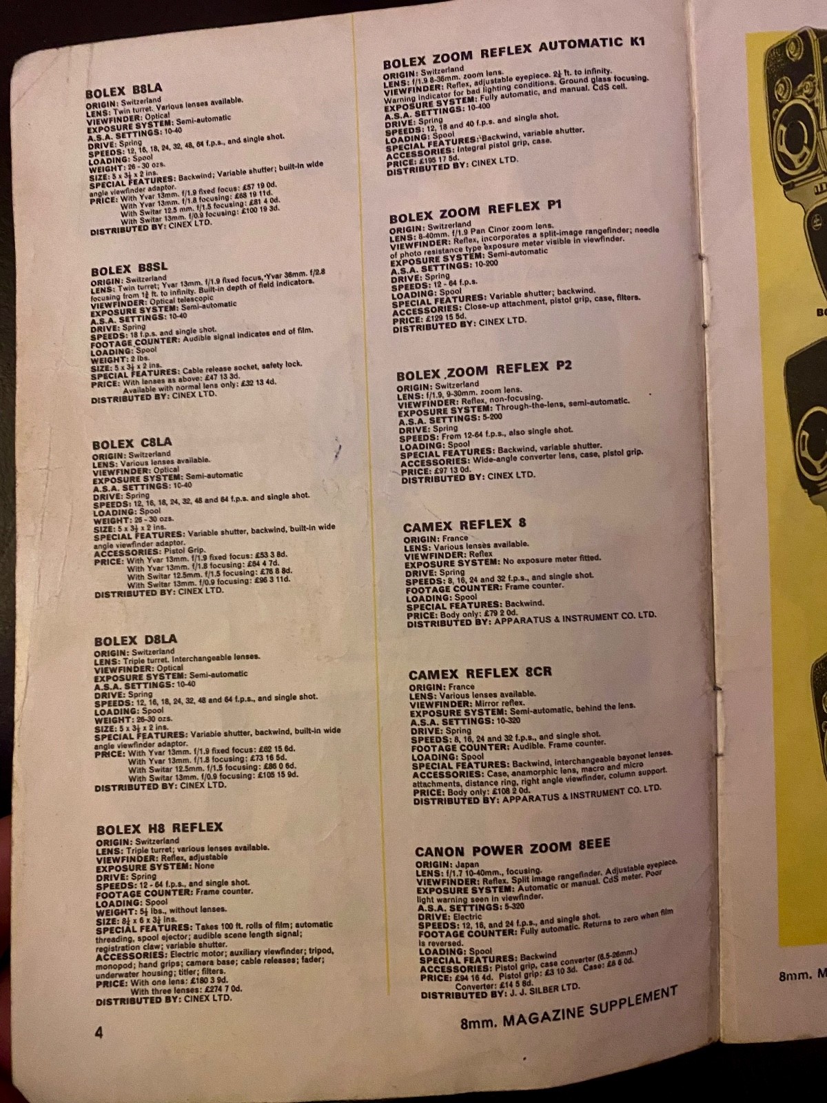 An A5 size supplement from 8mm Magazine June 1963, this was the first supplement that the magazine did and it is rammed full of the No.1 cine cameras of the time. Lovely nostalgic booklet in very good condition
