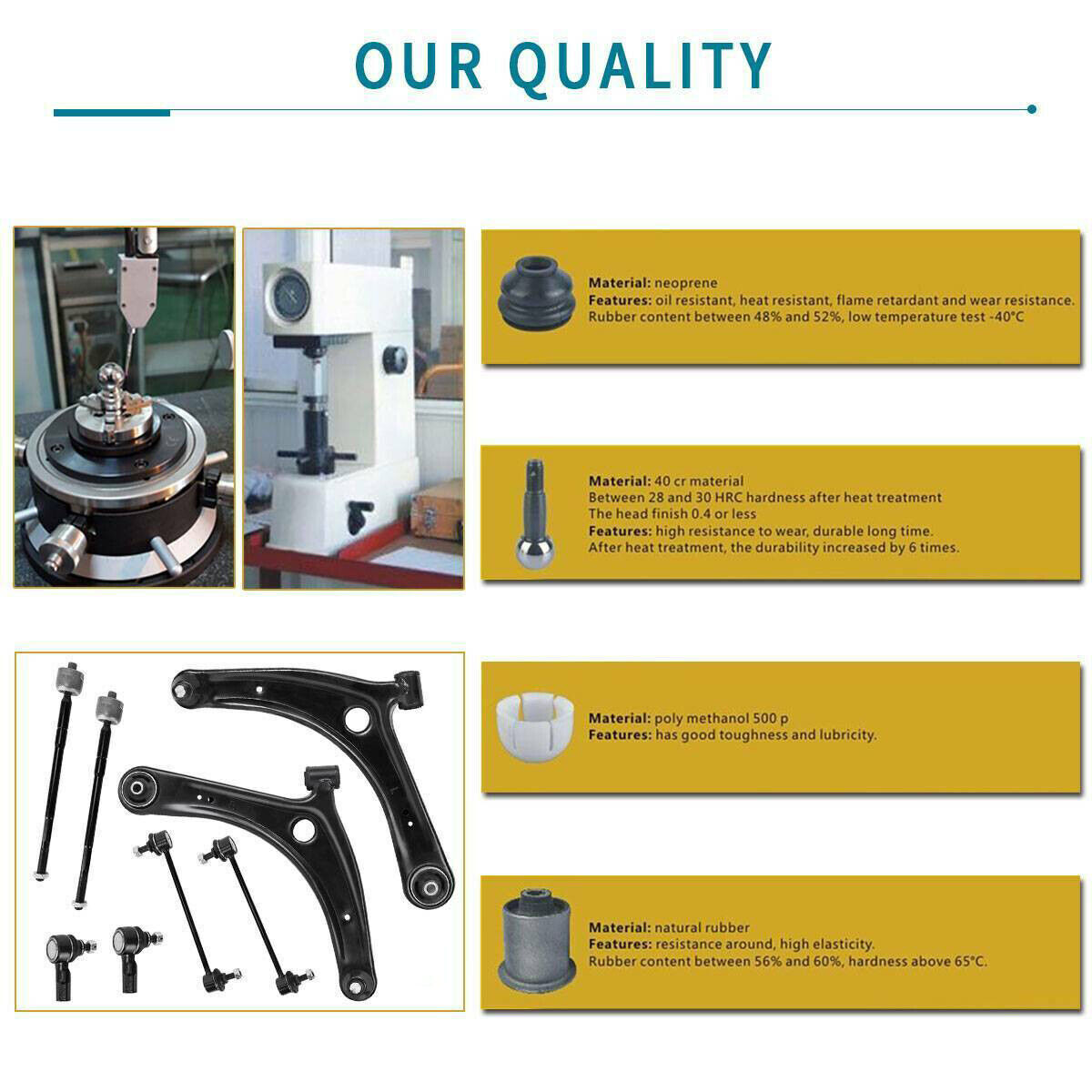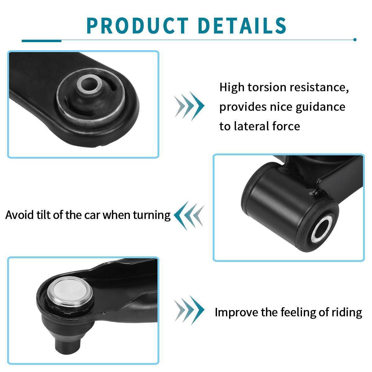 The high quality alloy material makesthe control arm highly wear-resistantand rust-proof, extend the service life ofthe product.