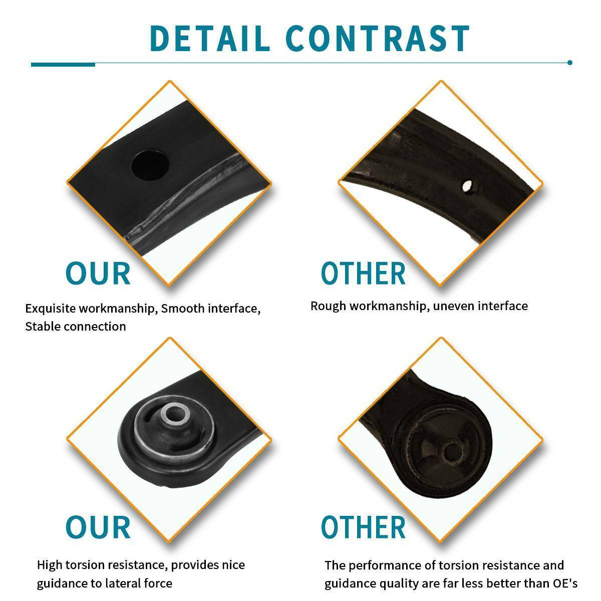 - Improve ride comfort: Pre-installed rubber bushings effectively help reduce the road noise and vibration, enabling you to enjoy a smooth and controlled ride during cornering and over bumps.