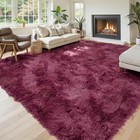 Fluffy Area Rug 8x10 Large Soft Plush Burgundy Carpet for Living & Bedroom Floor