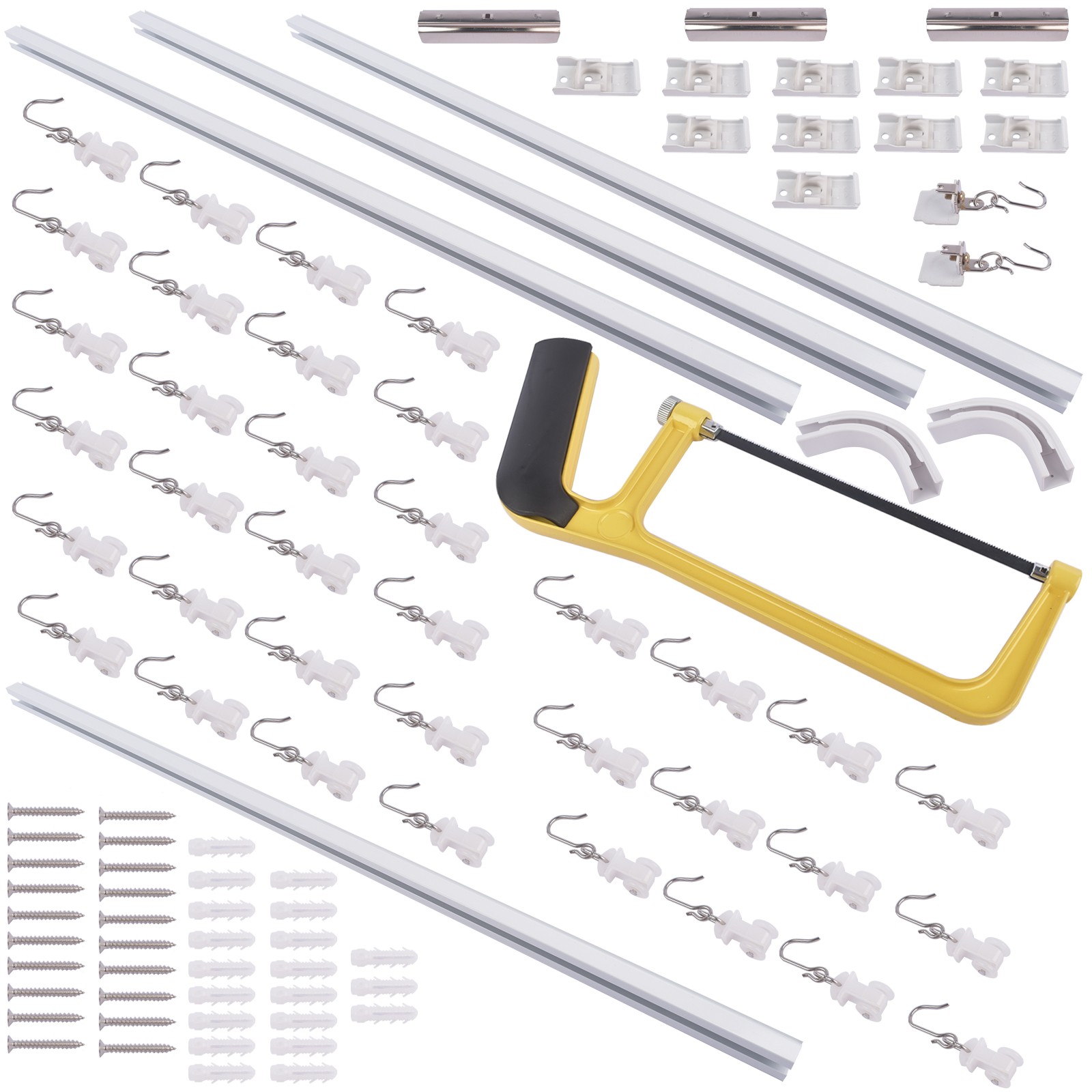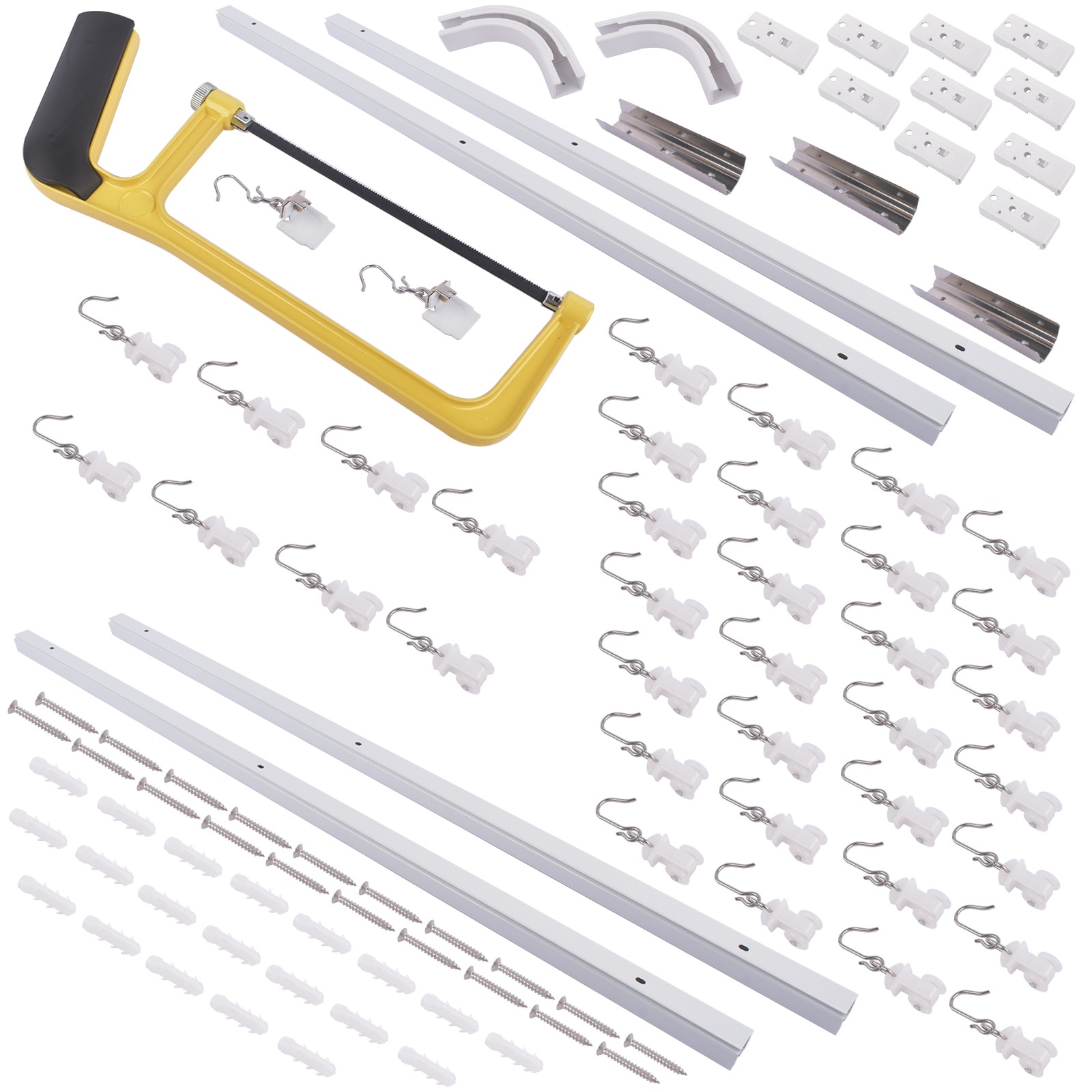 ▲SMOOTH SLIDING & BENDABLE DESIGN: The electrophoresis-treated track is smooth on the inside, and the high-quality silent pulley design allows you to pull the curtains quietly and smoothly. Our unique and simple 90-degree track connectors allow roller hooks to pass through smoothly and make L-shaped settings (90-degree turns) possible for perfect flexibility.