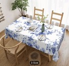 Fabric tablecloth White With Blue Flowers/ Birds Rectangular 70" X 55"New