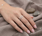 STERLING SILVER 925 OPAL INLAY CRISS CROSS RING WITH CZ ACCENTS~OR-6~BLNCT