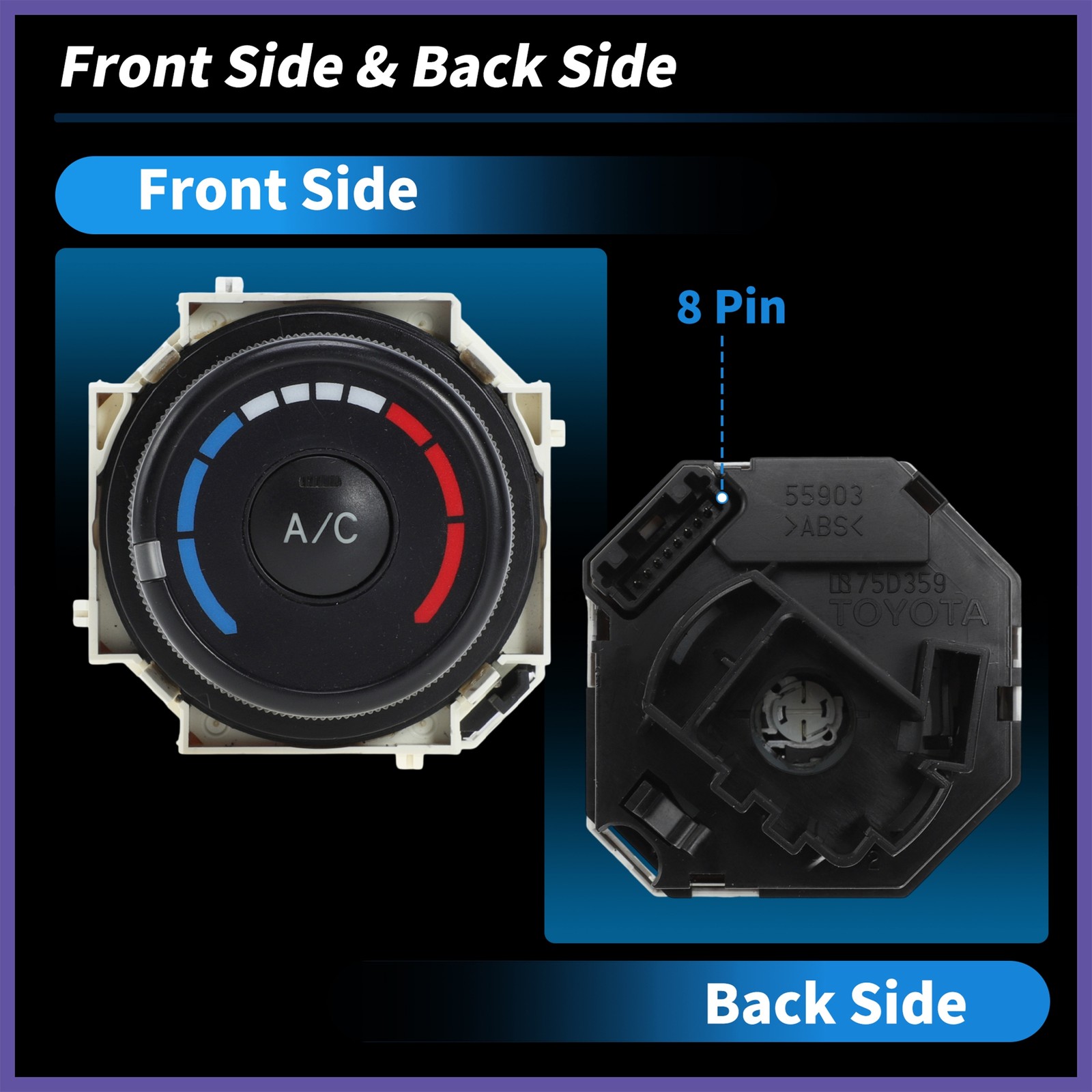 Product Description:OEM-equivalent air conditioning control switch panel ensures optimal cabin comfort with functionality and compatibility.This module regulates your HVAC system, allowing precise control over temperature.Designed for seamless replacement for your vehicle's A/C heater climate control module.Instant response and nice-touching knobs to upgrade your driving experience.Reliable quality materials to resist wear, heat, and daily use.Vehicle Fitment:for Toyota RAV4 2006-2012for Toyota Corolla 2009-2013OE Number:55903-12100/55903-0R010/55903-42050/5590312100/559030R010/5590342050/5590375D359/5590302091Specification:Material: PlasticColor: BlackPin Number: 8 PinKnob Function: Temperature Regulation, Refrigeration SwitchThis is a non-OEM product, accessory only!When to Replace Your Climate Control Module:Unresponsive buttons or knobsInconsistent temperature controlDisplay errors or backlight failureBlower fan not adjusting speedsVisible cracks to the switch