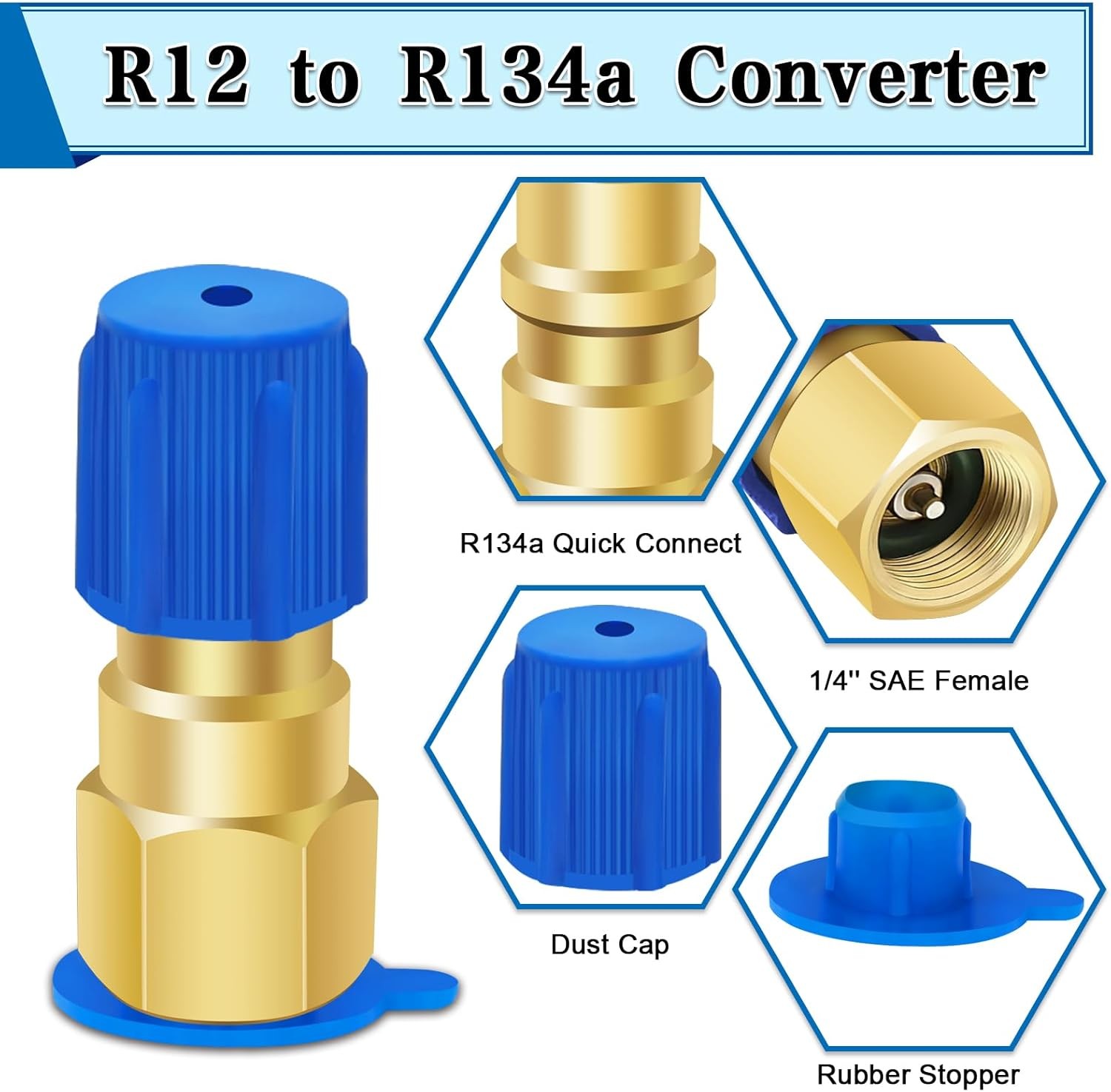 A/C Retrofit Valve Kit - Refrigerant Retrofit Valve Set - with R12 to R134A