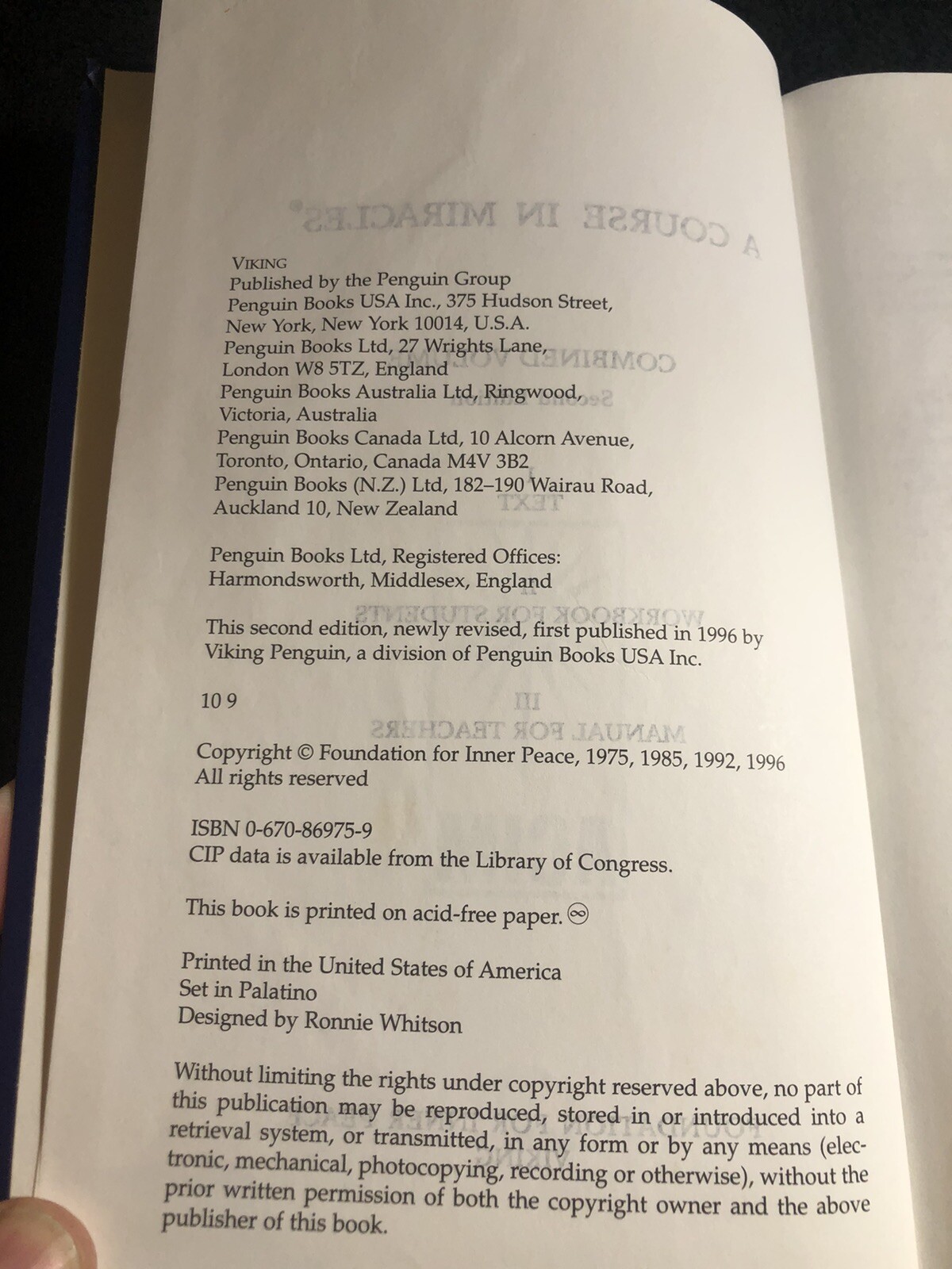 A Course in Miracles Hardcover Self Help Foundation For Inner Peace.
