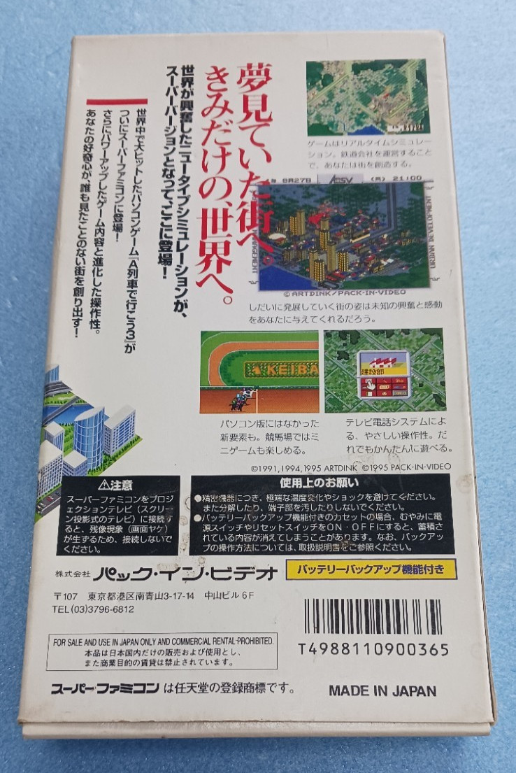 Up for sale is A-Train 3 S.V. (Take the A Train 3 Super Version) for the Super Famicom. This is a classic railroad management and city-building simulation game developed by Artdink, popular among strategy fans in Japan.