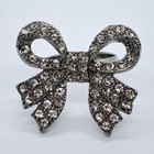 Rhinestone Bow Ring Silver Tone Size 6.75
