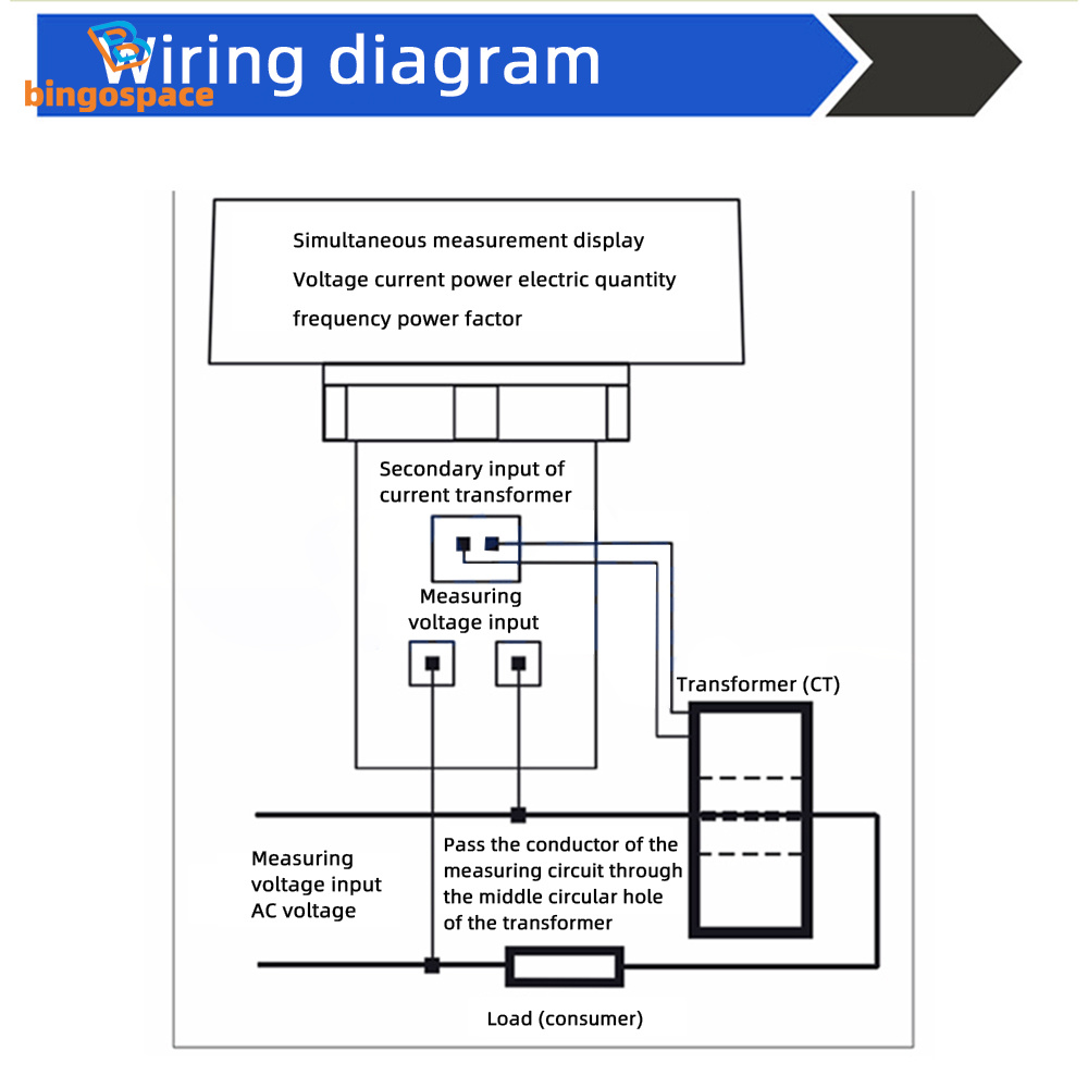 1. Connect the wires according to the wiring diagram in the attached drawing, and insert the two-wire plug of the secondary end of the current transformer of the instrument into the secondary input end of the instrument. Pass the main loop wire of the current test through the middle round hole of the current transformer.