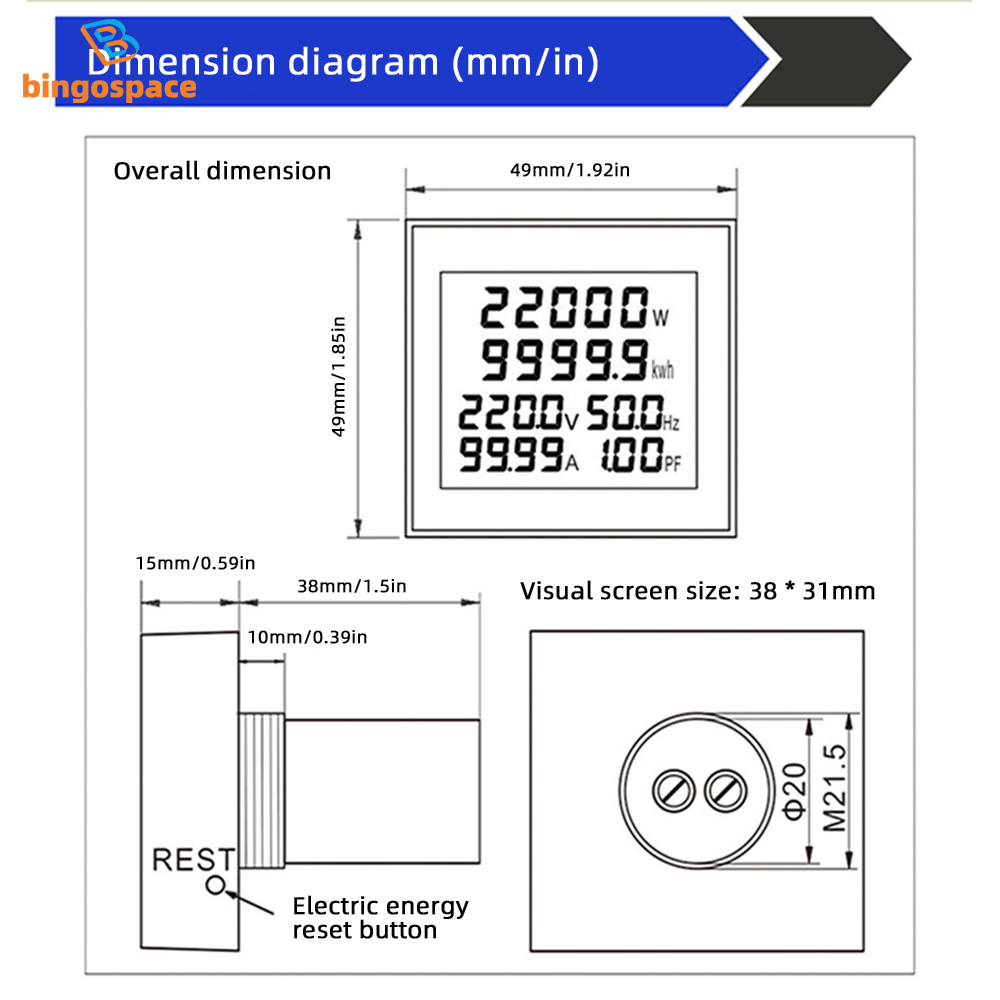 3. The power (Kwh) has a memory function, and the accumulated power consumption will be cleared after long pressing the round hole on the side of the meter for 5 seconds.