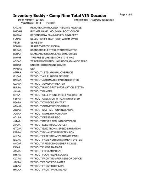 FUSION 14 1.5L, ID DG9H-19D629-BA thru BG