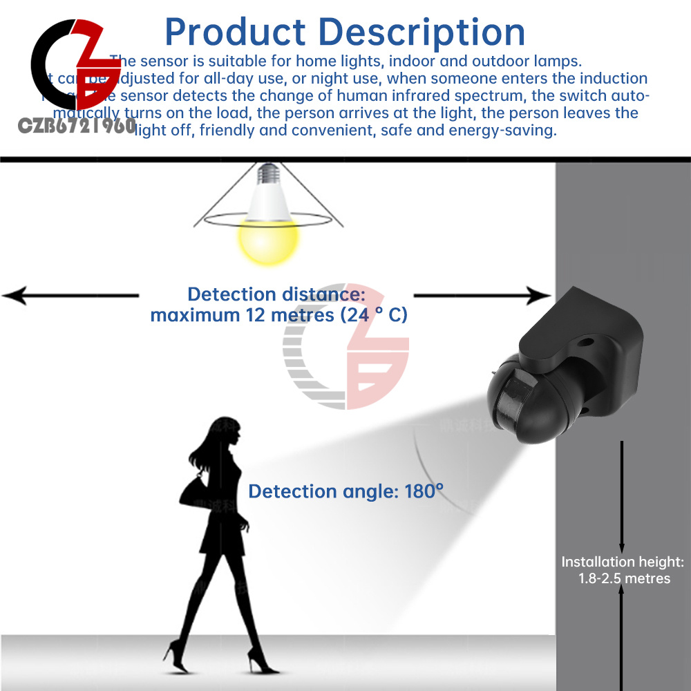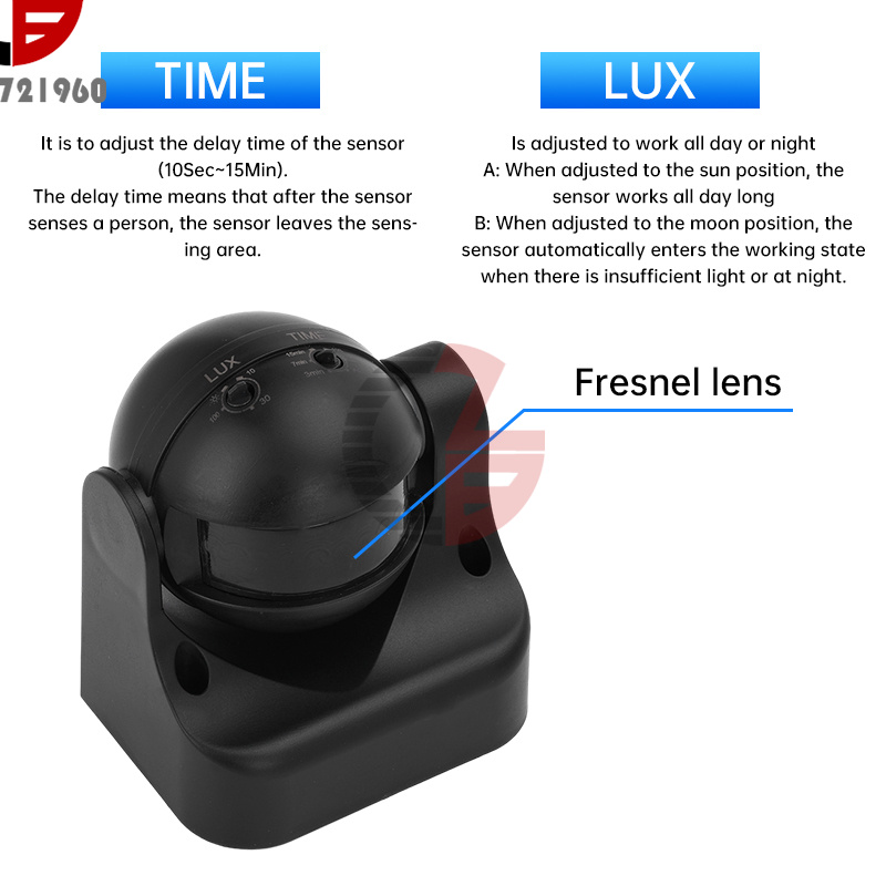 1. Spherical design, 180 degree adjustable sensing angle.
