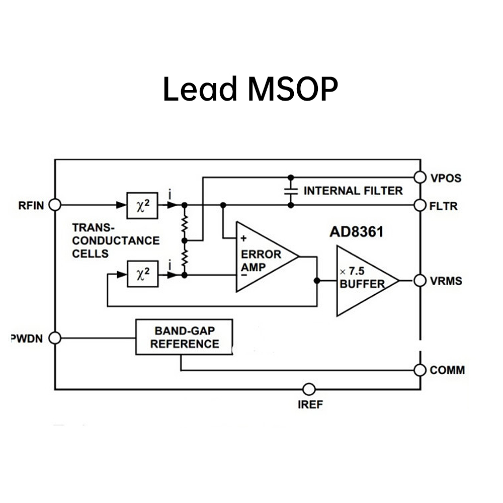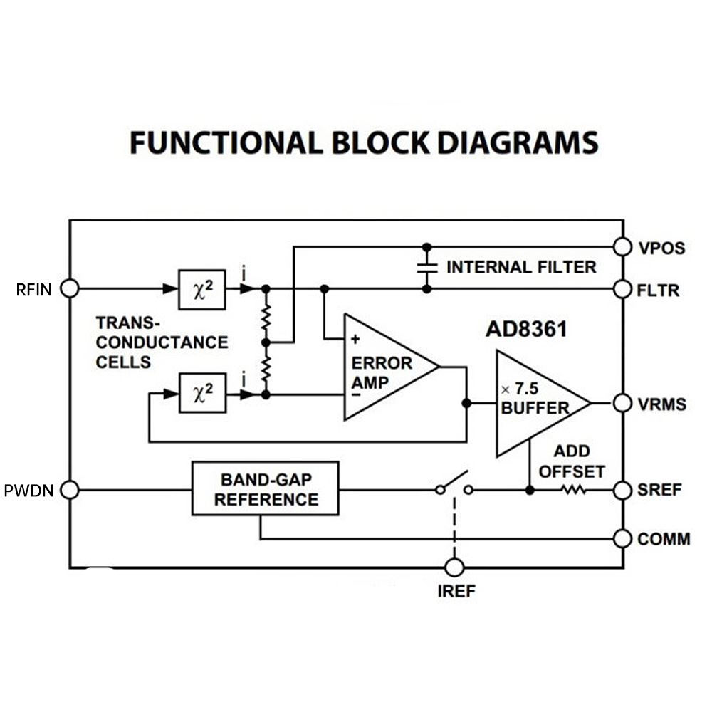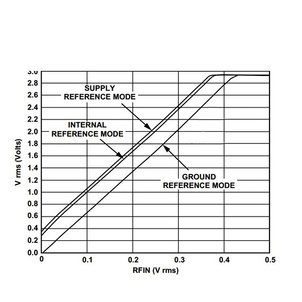 3. Output is a linearly responsive DC voltage with a conversion gain of 7.5V/V rms.