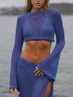 Crochet Knit Long Sleeve Crop Top and Slit Skirt Sweater Set