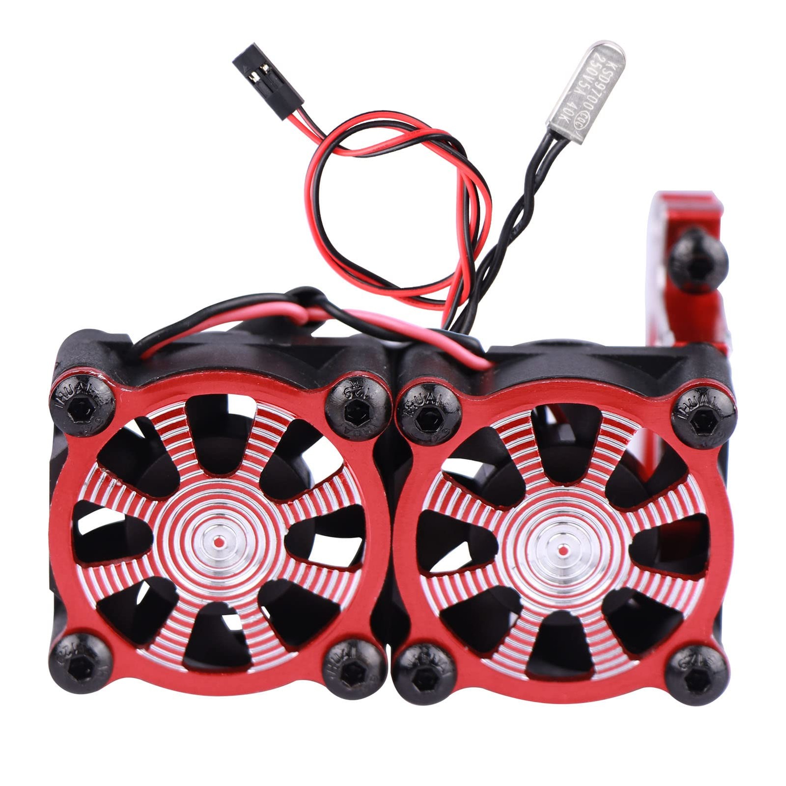 AIMROCK Aluminum 36mm-40mm RC Motor Heatsink w/Double Cooling Fans for 1/10 TRX4 SCX10 RC Crawler (Red)