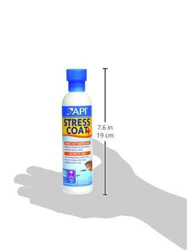 Product Description Treat your tap water, and provide a safe environment for freshwater fish instantly and easily with API STRESS COAT Freshwater Aquarium Water Conditioner. Tap water contains , chloramines and ammonia which can cause gill and tissue damage, breathing difficulty, stress and death. API STRESS COAT Aquarium Water Conditioner works instantly as a water conditioner to remove and chloramines from tap water and neutralize heavy metals. API STRESS COAT Freshwater Aquarium Water Conditioner Treatment contains aloe vera, and it is scientifically proven to reduce fish stress by 40% and heal damaged fish tissue. This conditioner replaces the natural secretion of slime that is interrupted by handling, shipping, fish fighting, or other forms of stress and helps heal torn fins and skin wounds while promoting tissue regeneration. API STRESS COAT is recommended by professional fish handlers. With API Aquarium products, it’s easy to keep a beautiful saltwater, freshwater or reef aquarium. For over 50 years, API has been creating innovative, research-driven solutions that make it easier to care for your fish and aquarium. API Aquarium Treatment Supplies are designed to work in conjunction with each other to provide best results to control algae, promote healthy bacterial growth and help control and cure fish diseases and conditions such as ich and fin rot. They work to provide a safe, hospitable environment for fish such as tropical community fish, cichlids, goldfish and more. With API, you can spend more time admiring your fish, and less time scrubbing your tank. Make sure to use all products as directed in order to ensure the best results. Aquarium Water Conditioner