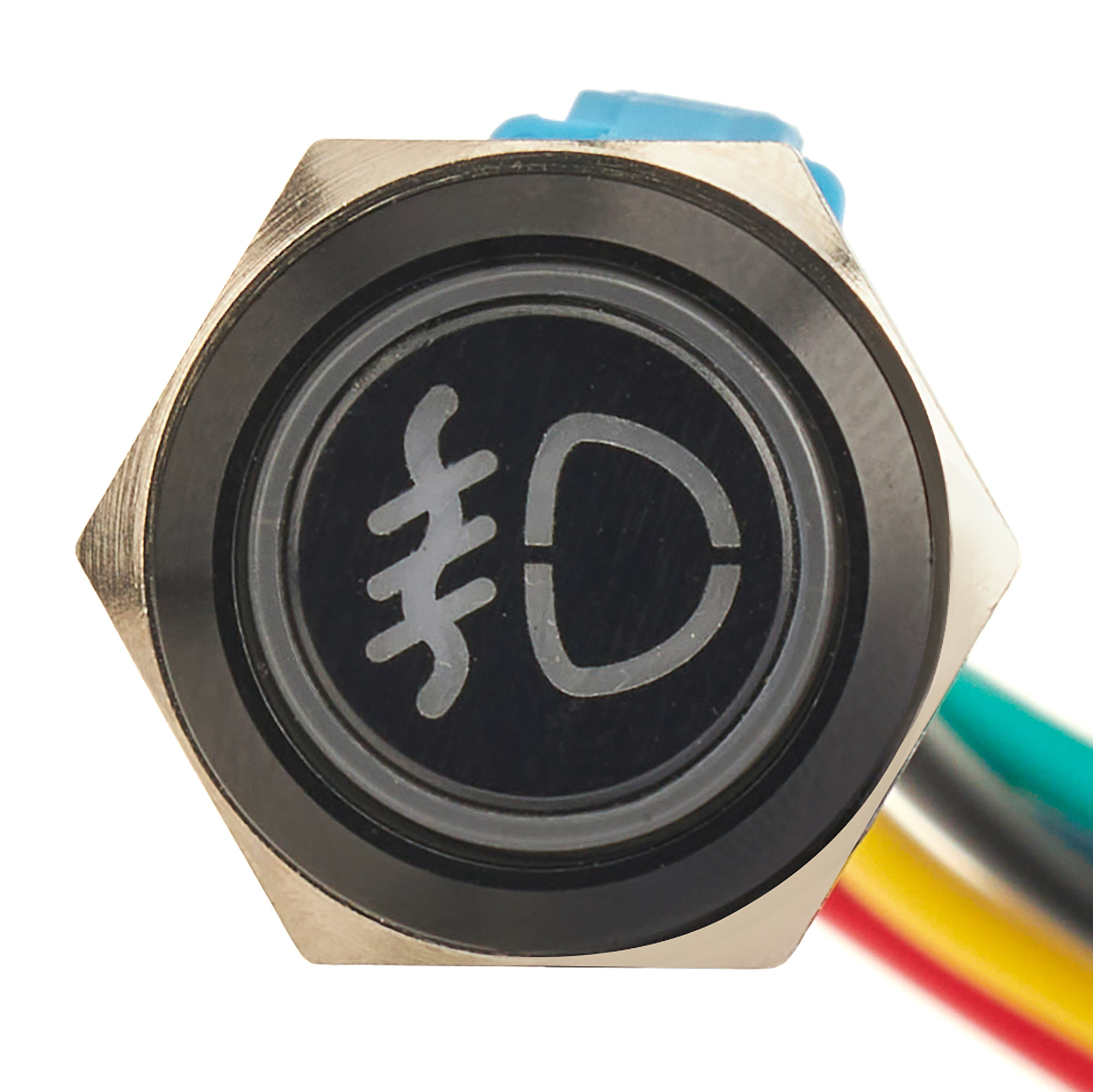 APS Illuminated Metal Push Button Switch - Black, Rear Fog Lights (Latching)
