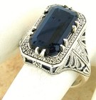 ANTIQUE STYLE 925 STERLING SILVER ROYAL BLUE SIMULATED SAPPHIRE RING #1315
