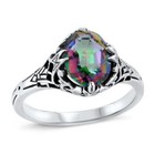 CLASSIC STYLE MYSTIC QUARTZ 925 STERLING SILVER SOLITAIRE FILIGREE RING 439X