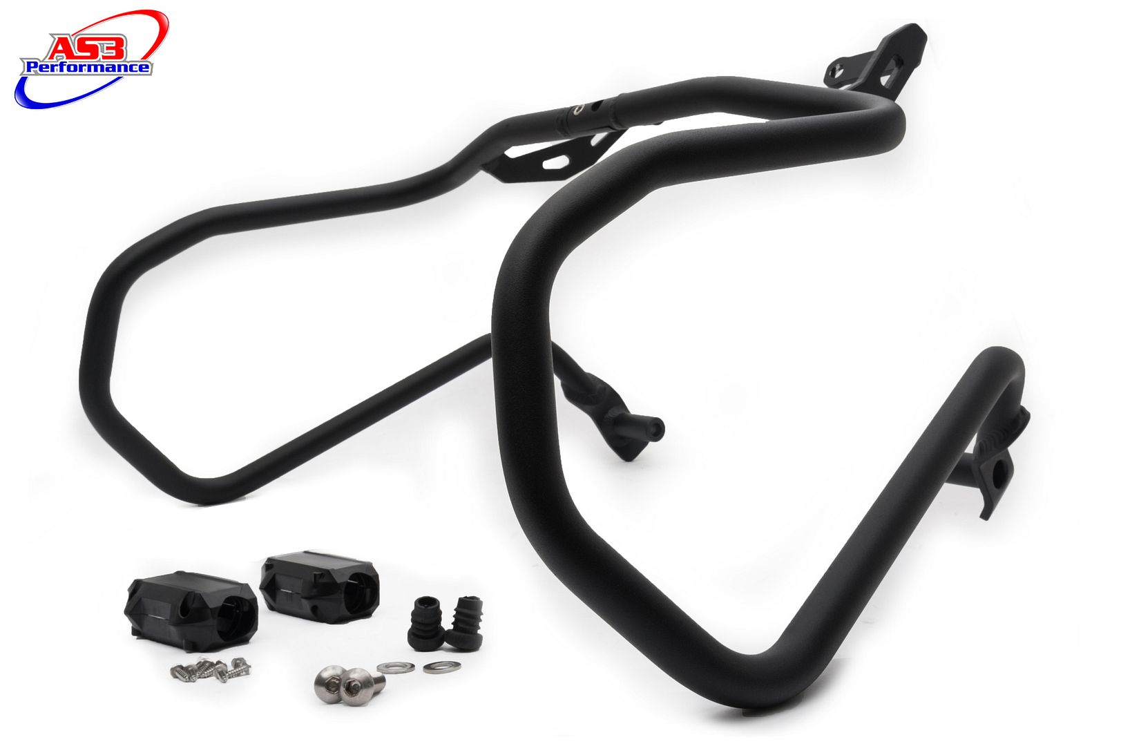 AS3 Performance crash bars are constructed from strong, high quality, 3mm thick aluminium to provide maximum protection to the engine and fairings without adding unnecessary weight. They come complete with all brackets and bolts to mount them to the motorcycle as pictured and fitting instructions are also provided. AS3 Performance crash bars come in a textured matt black finish to match our range of aluminium skid plates.