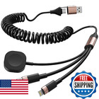 3 in 1 USB-C, Apple Watch & Lightning Coiled Cable - 100W Retractable Portable M