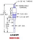 Auburn FRS-4-6 Flame Rod Probe Kanthal 5/8 Hex 1/4-18 NPT Replaces Eclipse