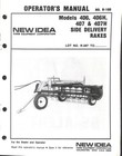 New Idea 406 407 Side Delivery Rakes Operators Manual Original!