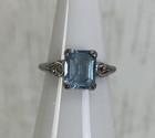 Avon Emerald Cut Light Blue Stone Silver Tone Ring Size 7.75