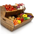 Potato and Onion Storage Bin Set of 3 – Stackable Acacia Wood Onion Storage B...