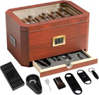 Glass Top Desktop Wood Cigar Humidor Box Storage Case with Hygrometer,Humidifier