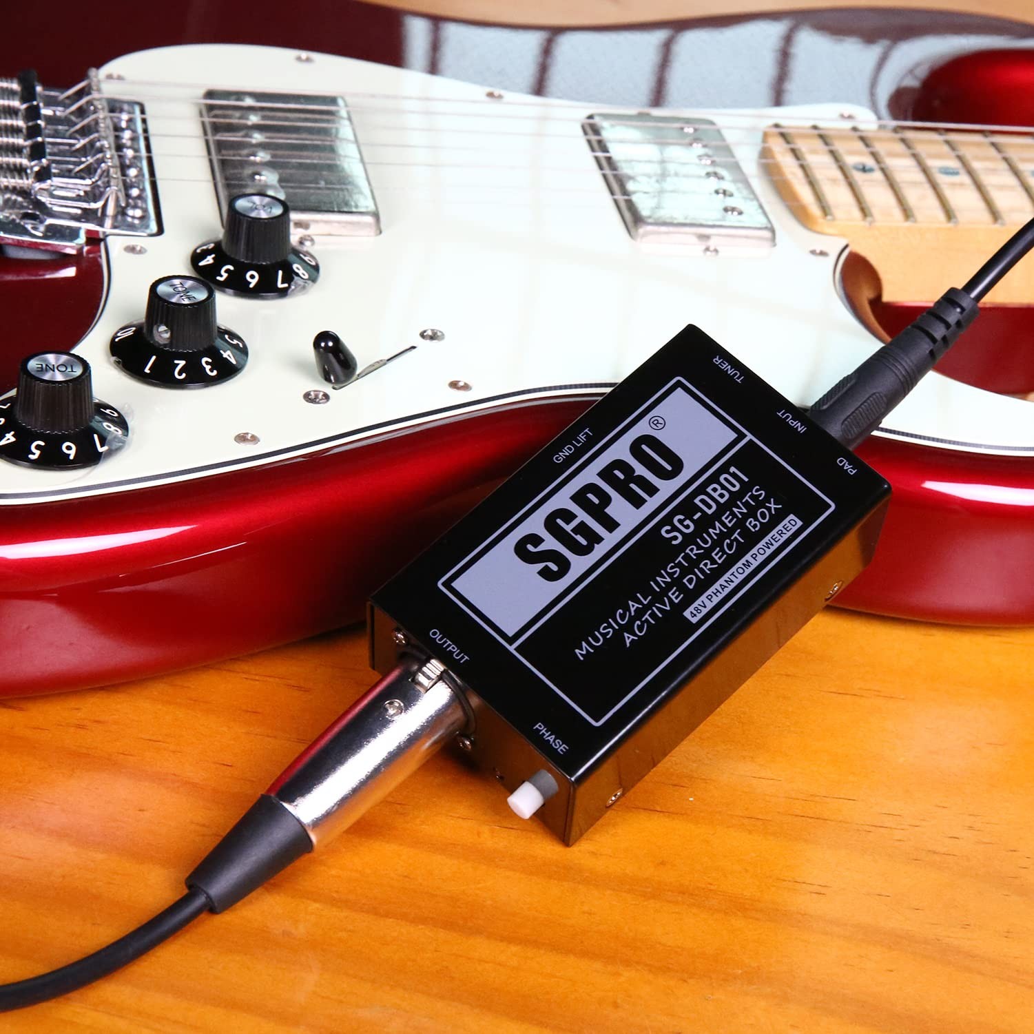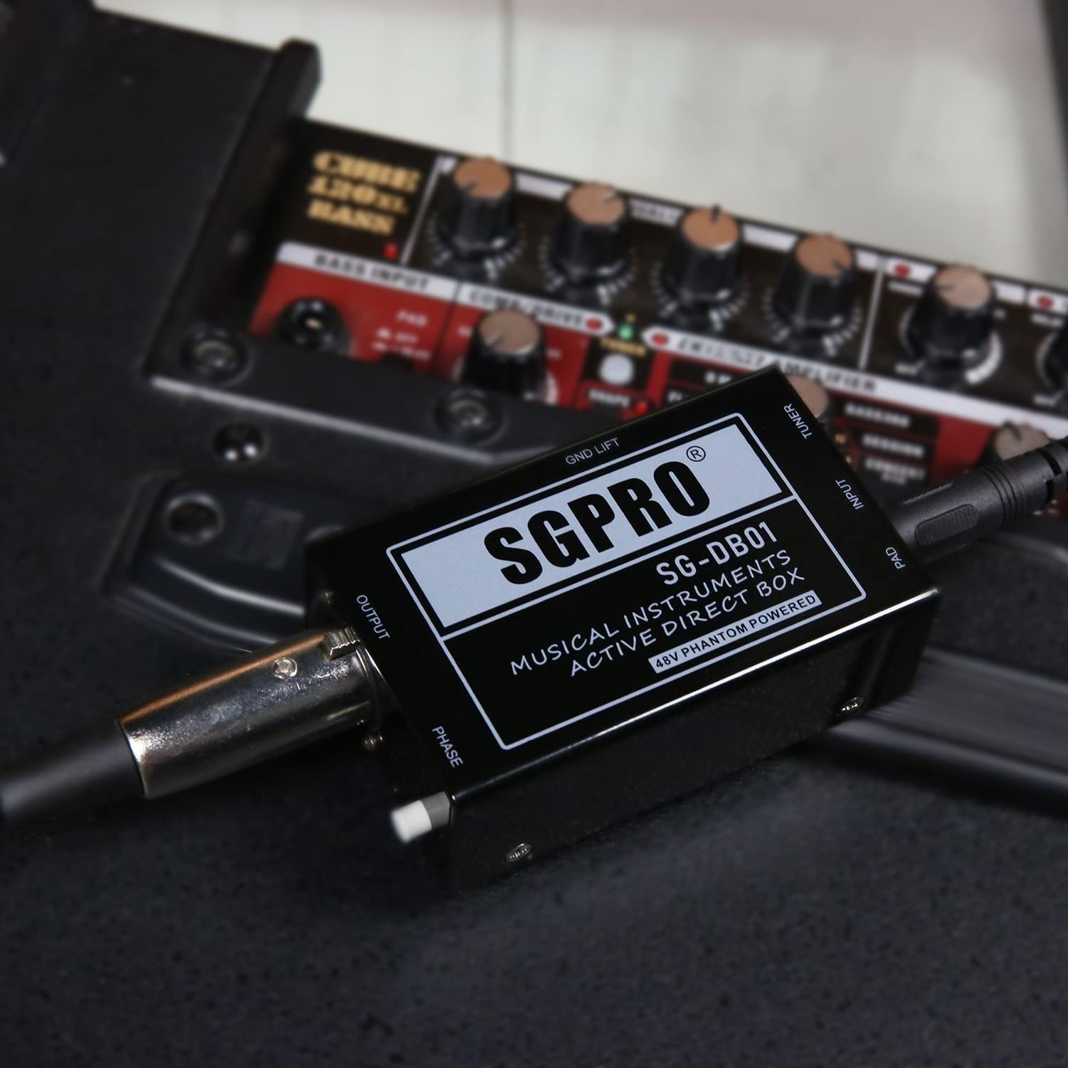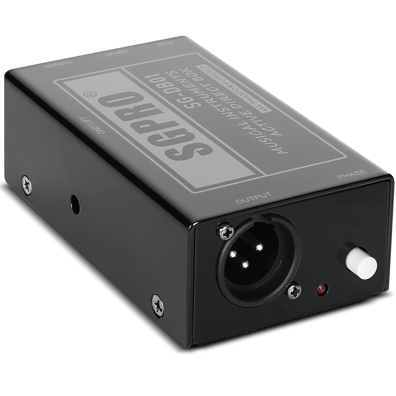 THROUGHPUT/TUNER Unprocessed signal to be sent to an amplifier on stage and the PA via the balanced XLR output. For example, for the bass guitar, use an amplifier only for onstage monitoring and decreasing stage volume. It allows for longer cable runs or effects pedal chains. PHASE SWITCHWith the phase switch, the direct box can reverse polarity to align the absolute polarity of a direct signal with that of a microphone on the same source, bass, and acoustic guitar. It is also handy to prevent feedback in case the mixer channel isn’t equipped with a polarity reverse. -FREE USEThe SG-DB01 guitar direct box is strong and with an anti-slip sponge at the bottom. Easy and secure to use in different circumstances. No matter as a guitar DI box or DI box for bass guitar. It is solid and durable with high-quality steel and a special protector box design. PROTECTION FOR YOUR INSTRUMENTSThe direct injection audio signal box is fundamental to protecting your musical instruments, sound mixer, or console during live performances or recording events.