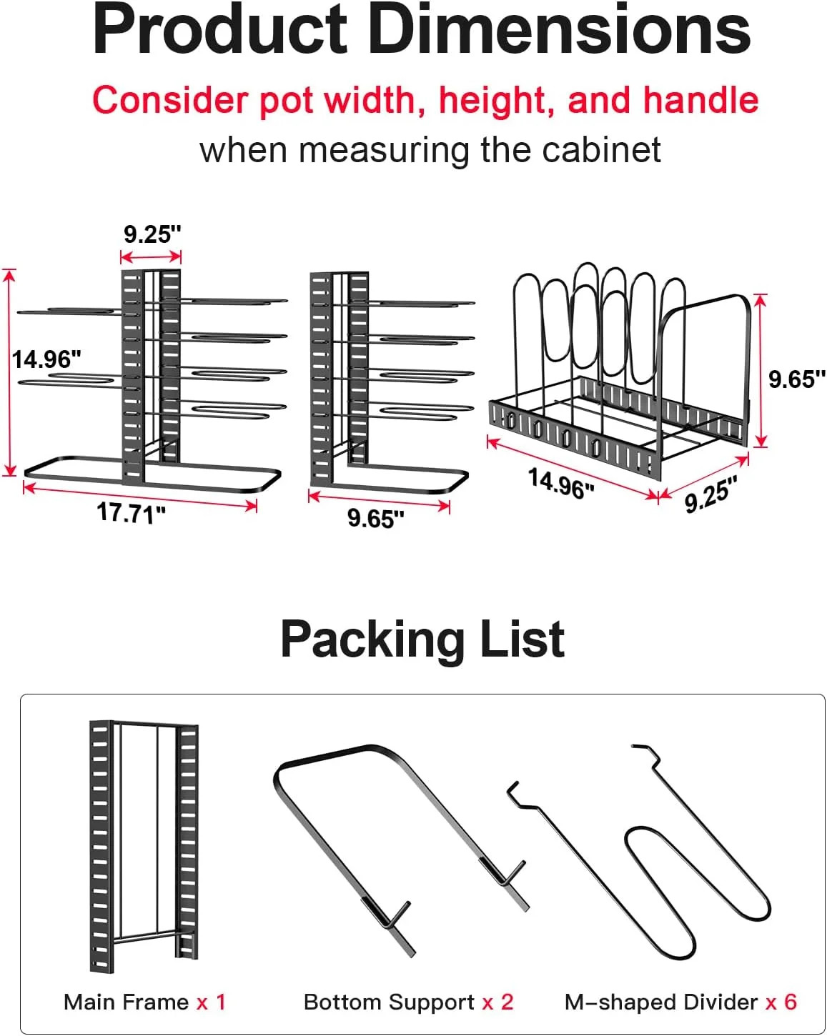 - Usage Instructions: Adjust the rack according to your preferred height and configuration. Place it under your kitchen cabinet for convenient access to your pots and pans.