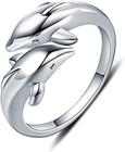 Double Dolphins Ring 925 Sterling Silver Adjustable Statement Rings Open