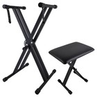 Keyboard Stand & Bench Set Double X Adjustable Piano Stand Black