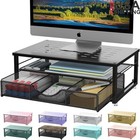 Metal Monitor Stand Riser Computer Desk Organizer Laptop Storage Drawer Black