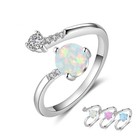 925 Sterling Silver Created Round Blue Opal Rings for Women Cubic Zirconia Adjus