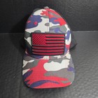 Camo American Flag Red Blue Camouflage Trucker Hat Snapback OSFM Adjustable