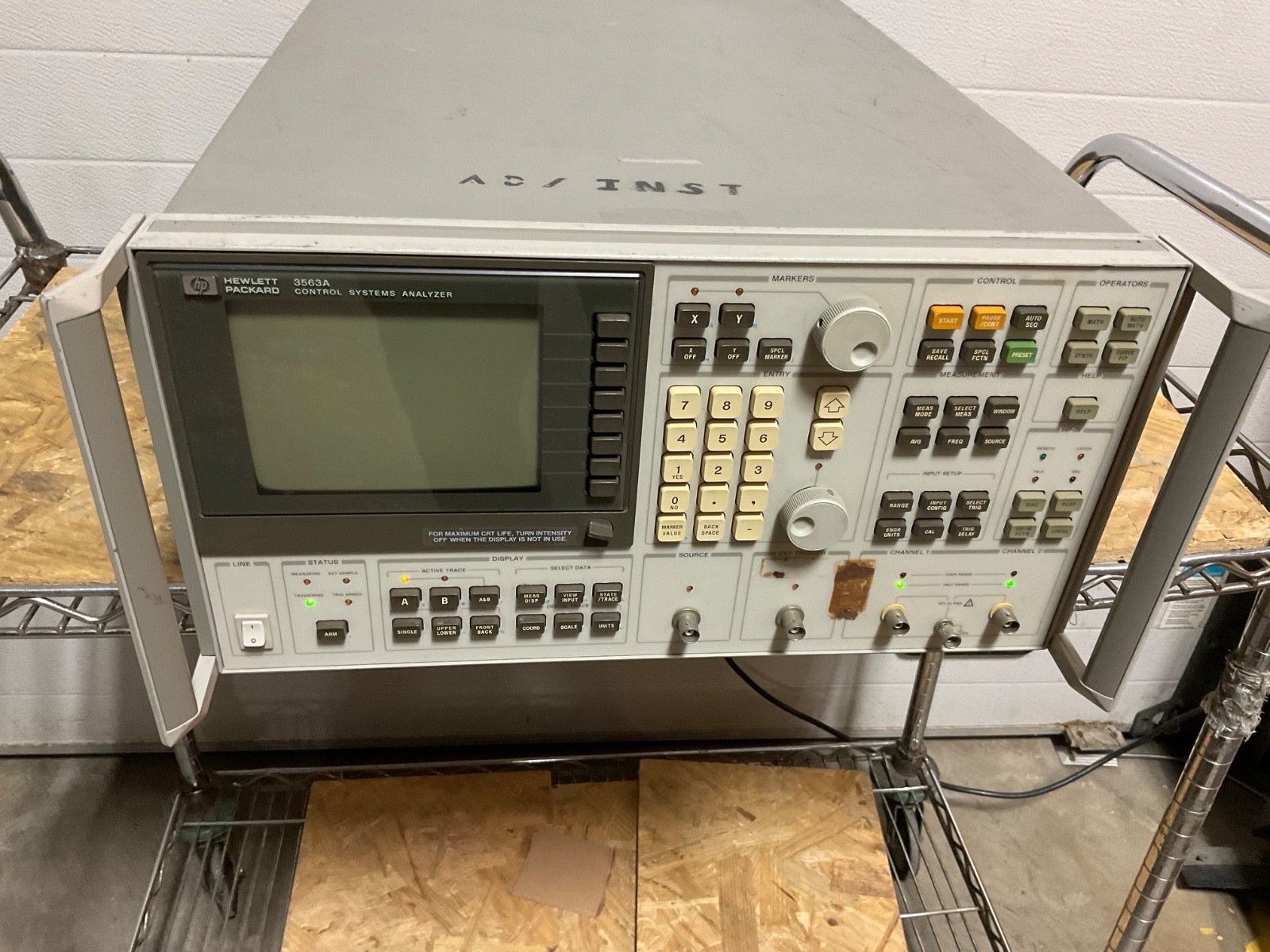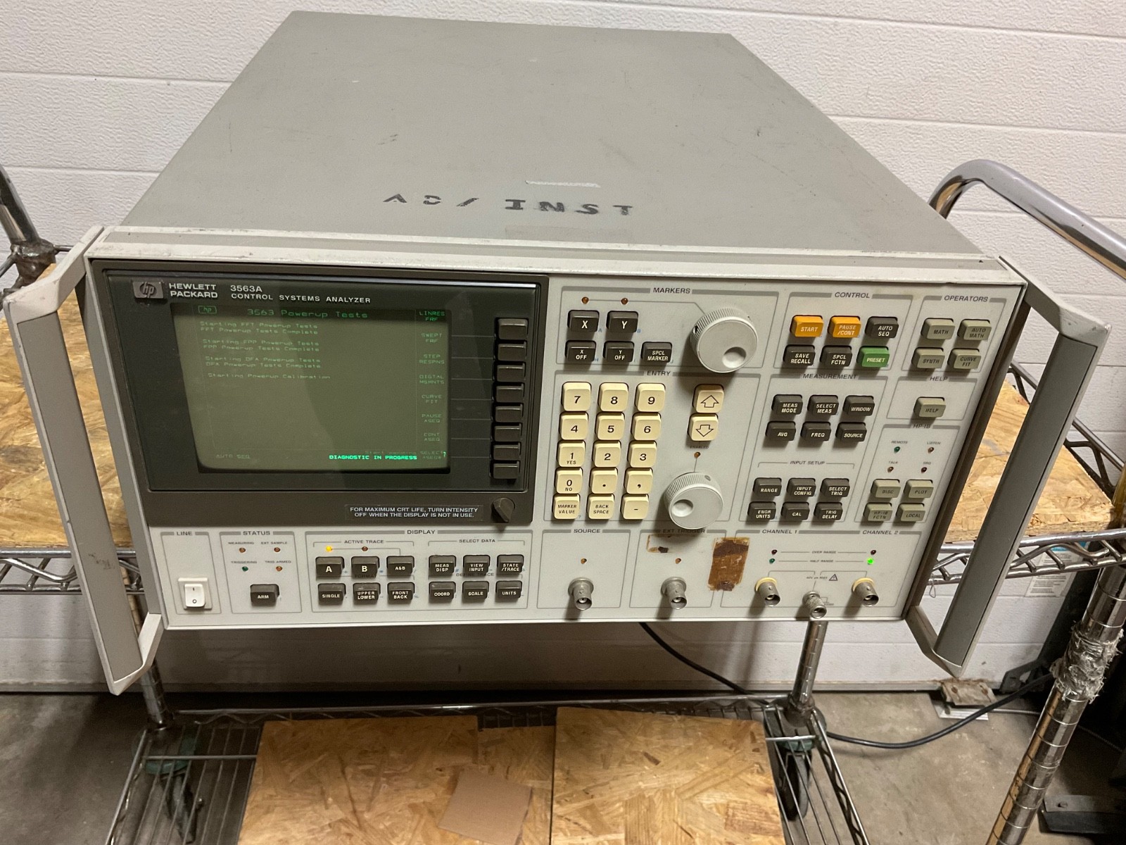 This Ebay item is used equipment by Hewlett Packard Agilent Technoligies. IT is a HP model # 3563A Control System Analyzer as pictured. Everything & Only what’s pictured is included. It is in good condition with marks & scratches. It is missing 1 bottom plastic feet. It powers up fine as pictured but Sorry we have no way to fully test before shipping so selling this for the valuable parts or for refurbishment by the buyer. Local Buyers are welcome to inspect this in our warehouse before purchasing. Please call & make an appointment. Buyers may also call us or send us their day time phone # & have us try any test procedures with their instructions while on the phone.