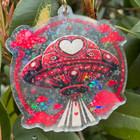 Red Heart UFO Holographic Star Keychain l Aesthetic Flying Saucer Alien Ship