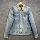 All Saints Denim Dexter Jacket Mens Size XL Blue Corduroy Trim Distressed Washed