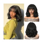 WIGER Yaki Texture Wavy Wig with Bangs for Women Short Shoulder Len... Fast Ship