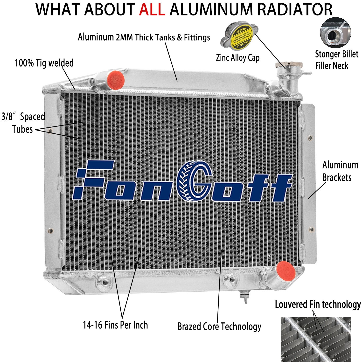 Most importantly, it has a much higher capacity for coolant than stock ones, which means that your cooling system will be more efficient and will be more resistant to temperature surges in racing applications.