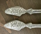Salad Serving Set Fork & Spoon Fish Handles Cast Aluminum Metal 13” Vintage