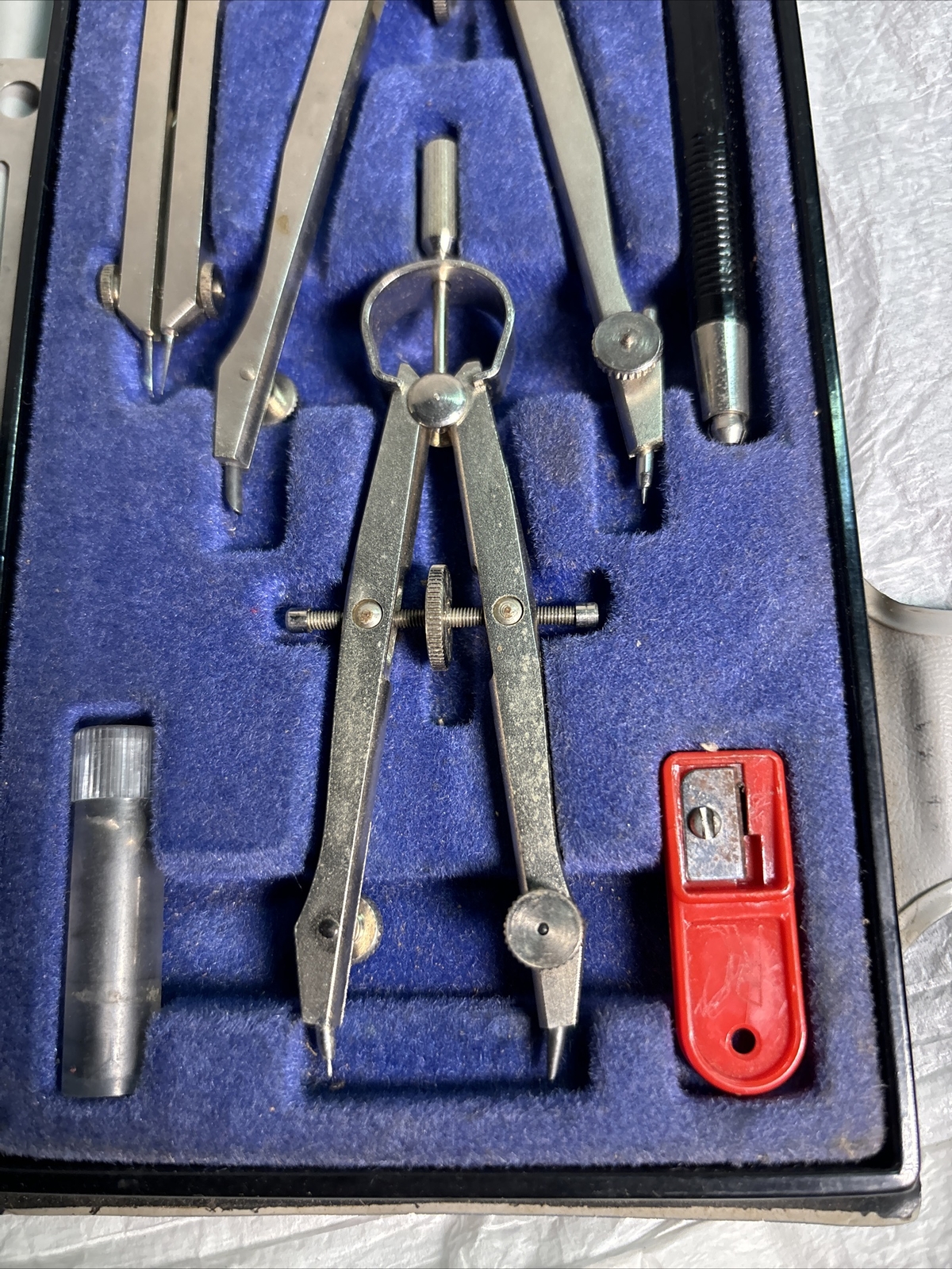 This vintage Alvin 795 B Compass Drafting Set is a collector's dream. It is made by the well-known brand Alvin and is perfect for those interested in engineering or drafting tools. This set includes a compass and other drafting tools that are sure to impress any collector or enthusiast. The set is in great shape and has been well-maintained over the years.